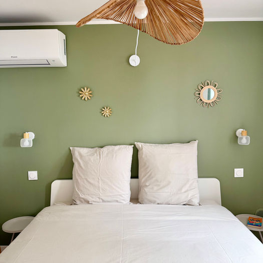 An air-conditioned bedroom with a 160 × 200 cm bed, and of course, a sea view !